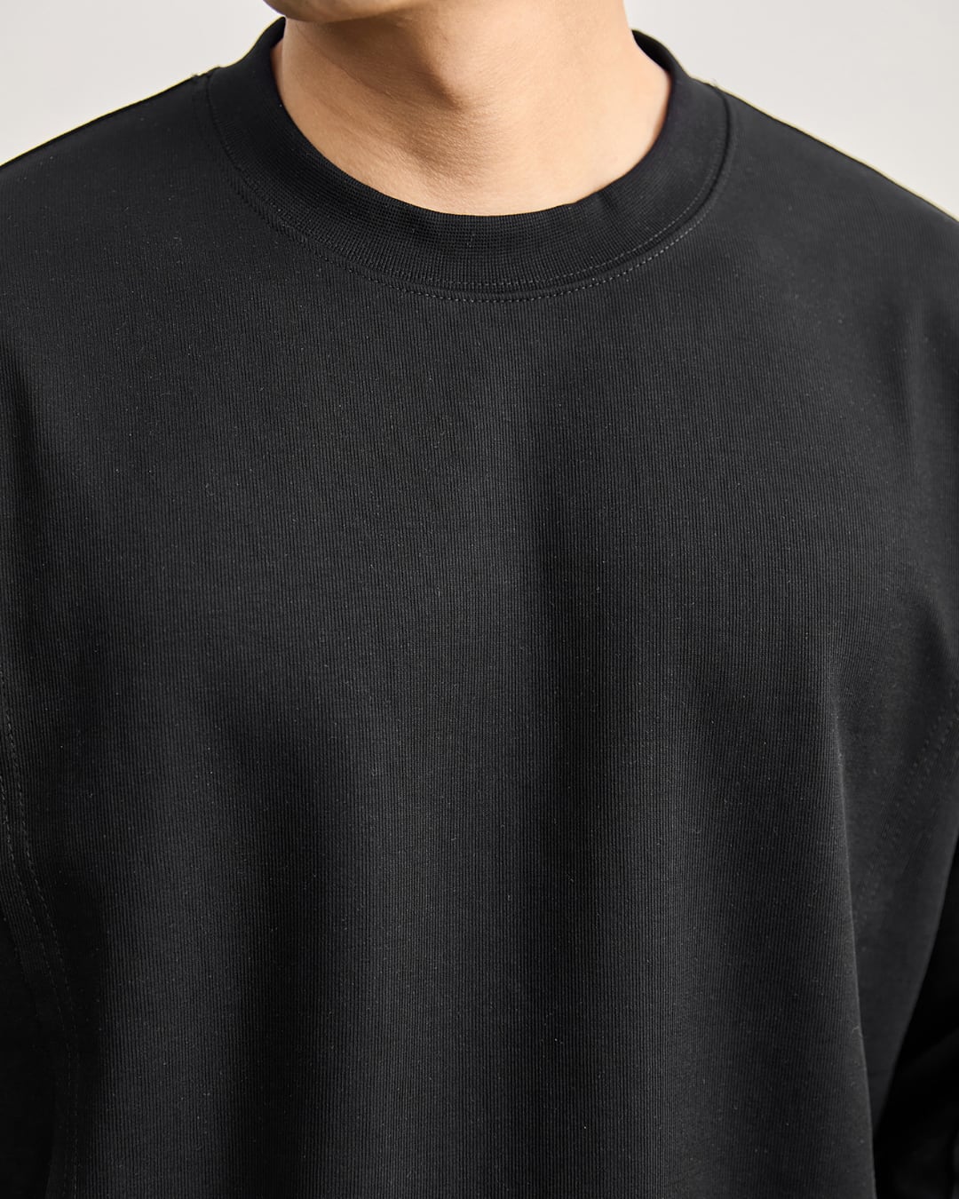 装飾を抑えたミニマルなデザインのクルーネックロングスリーブ。