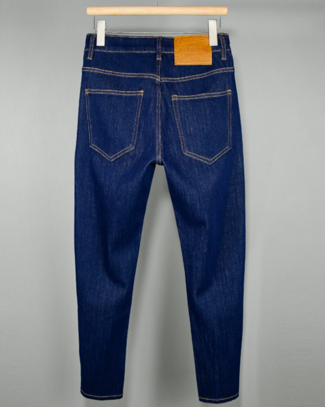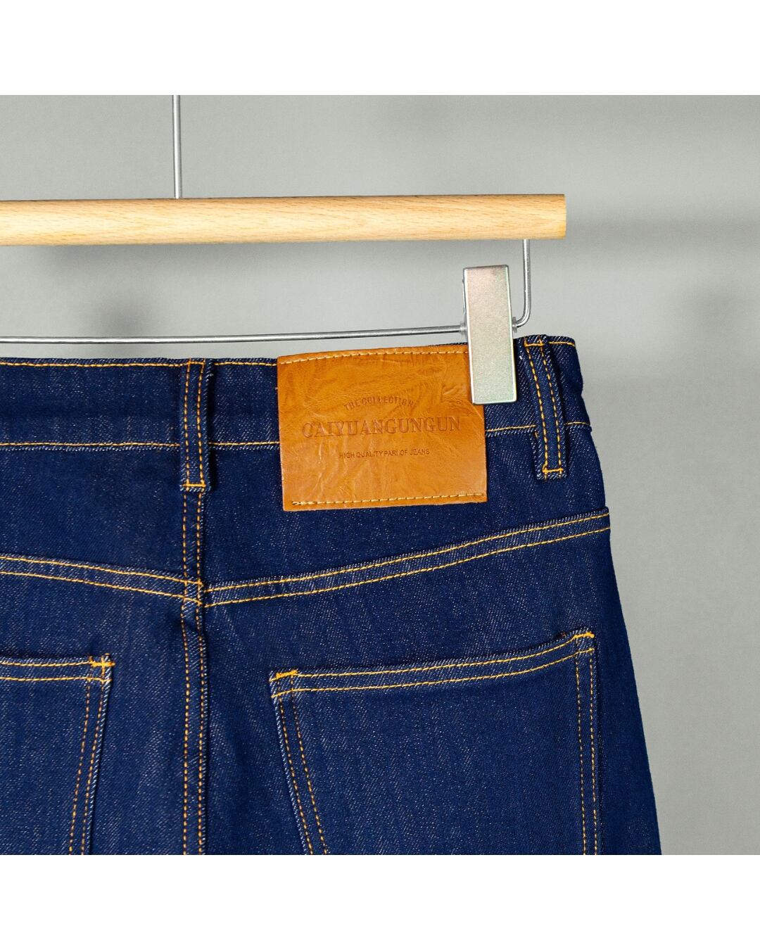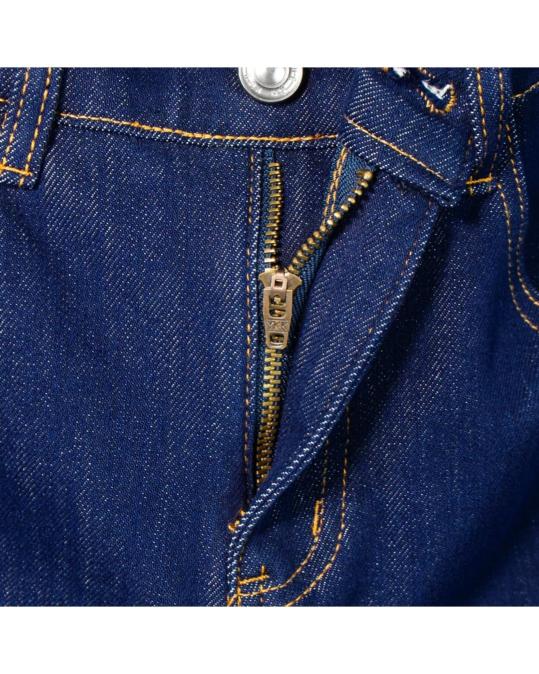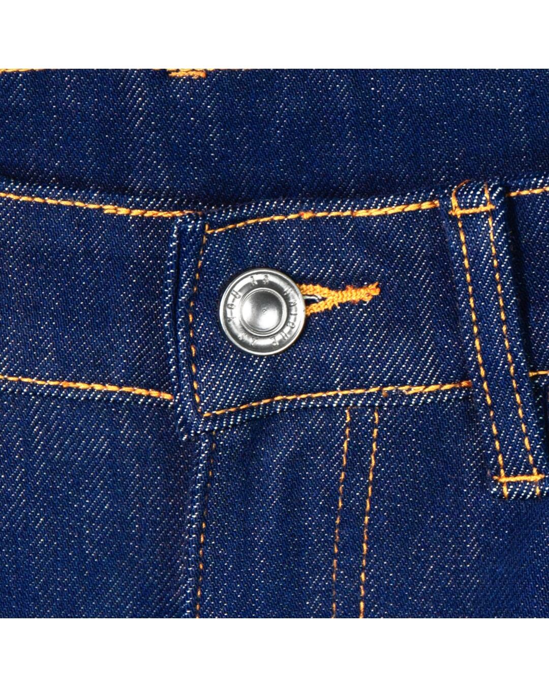 実物撮影のデニム生地は、程よい厚みとハリ感を備え、シーズンを問わず着用可能。