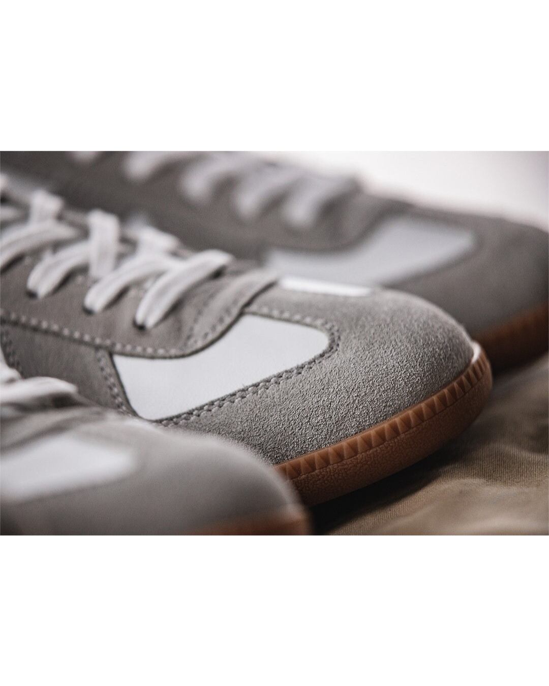 ミニマルで落ち着いた配色に、スエード×スムースの異素材コンビが映える一足。