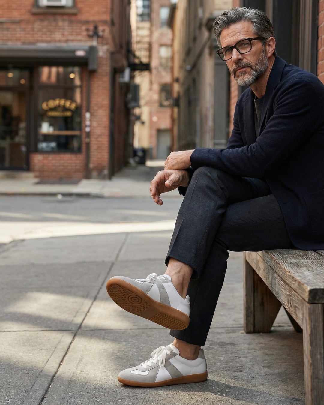 デニム・スラックス・セットアップまで自然に馴染む万能シューズです。