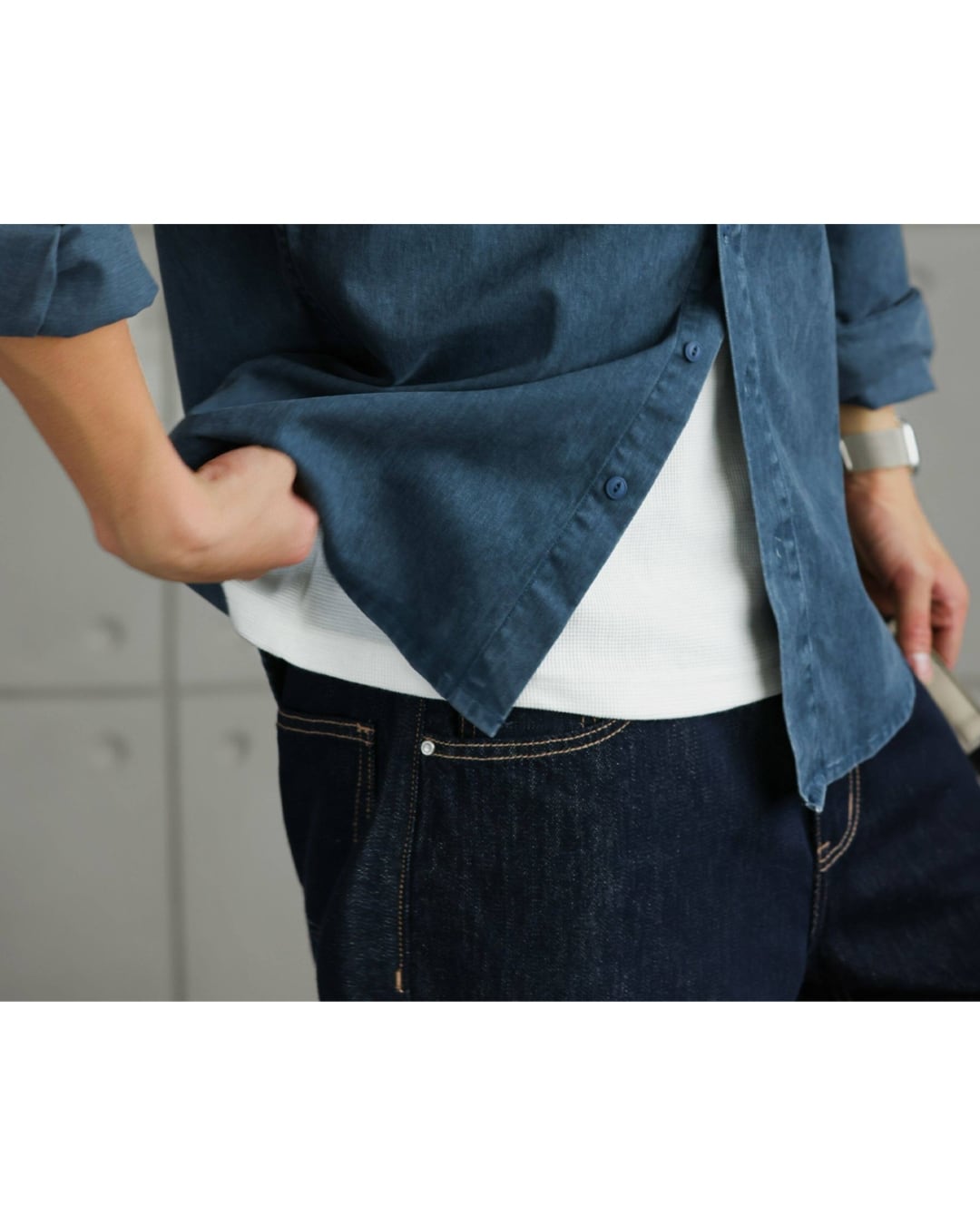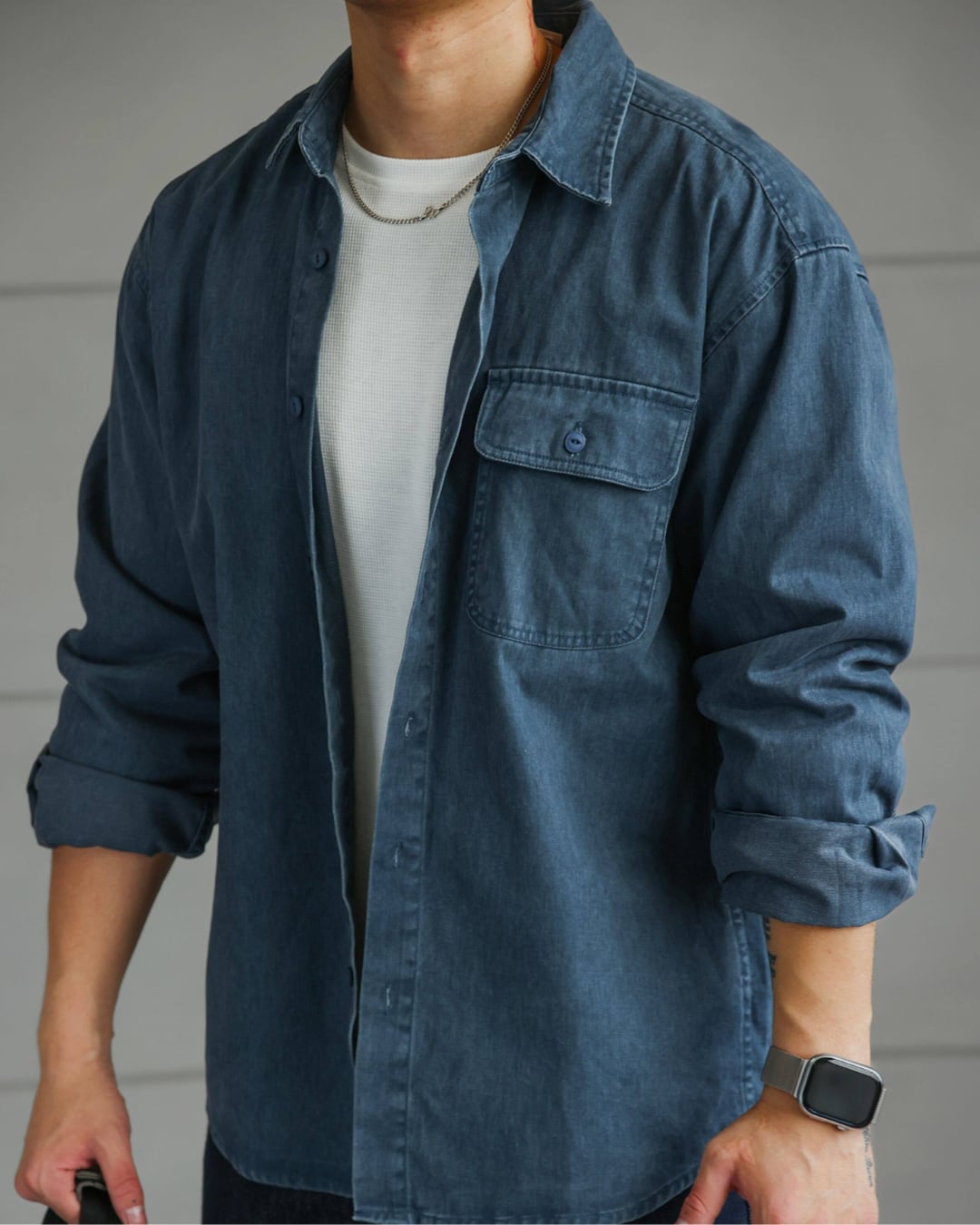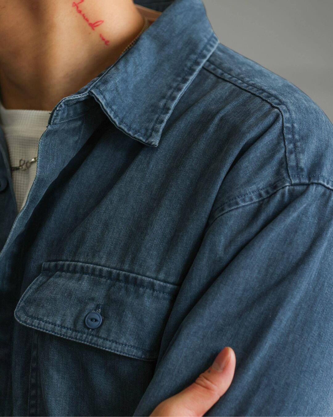 新品でありながら、どこか馴染んだ雰囲気を持つデニムシャツです。