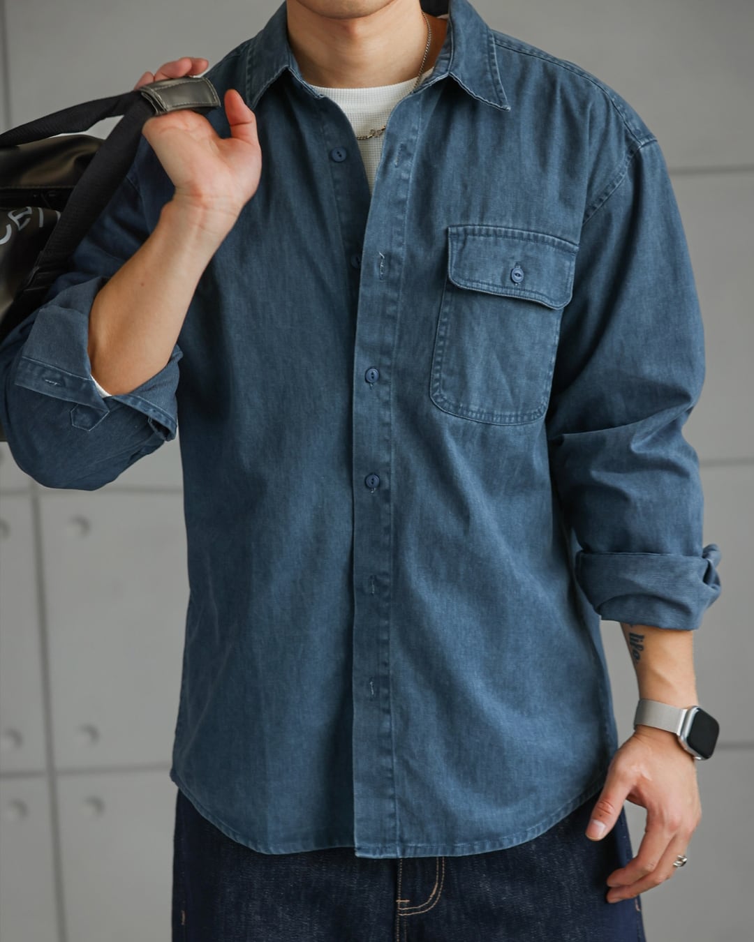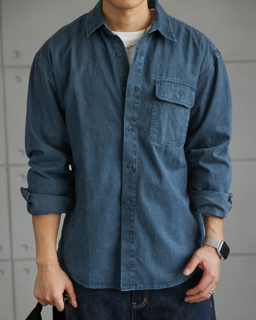 フェードカラー ワンポケットデニムシャツ A0284