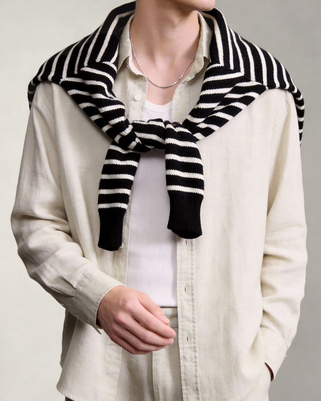 羽織るだけで柔らかな印象に整います。